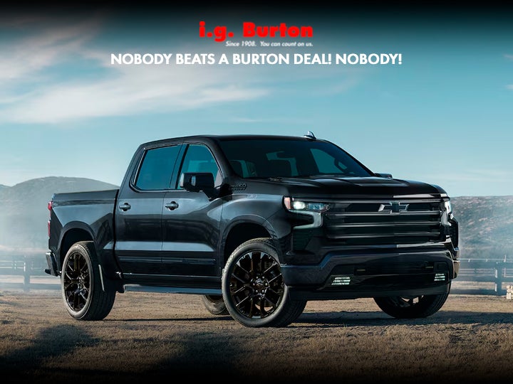 Not all customers will qualify for all rebates and incentives. All conditions are subject to credit approval. While we make every effort to ensure the data listed here is correct, there may be instances where rebates, incentives, options, or vehicle features may be listed incorrectly. Please contact the dealer to verify availability, payment, price, and options. Dealer cannot be held liable for omissions or errors prior to sale. Stock OEM pictures may not represent the actual vehicle (Options, colors, trim, and body style may vary). Specifications, features, safety, and warranty data are based on what is available as standard specs/features per trim level, for the designated model year and may not apply to vehicles with added packages or options. Dealer-installed options may include additional fees. Vehicles may be in transit to i.g. Burton, please call to verify availability. MSRP (Manufacturer's Suggested Retail Price) is not equivalent to the dealer's asking price. Final sales price INCLUDES DESTINATION AND DELIVERY CHARGES. Taxes, tags, title, registration, and $800 dealer documentation fees are extra. For gasoline, diesel, and hybrid fueled vehicles, MPG City/Hwy is the combined fuel economy. It is a weighted average that is calculated by weighting the city miles-per-gallon value by 55% and the highway miles-per-gallon value by 45%. It provides a quick and easy comparison of fuel economy across vehicles. EPA-estimate metric: these are contingent on ideal conditions within a lab. Real-world situations such as carrying passengers or cargo, using climate control, driving style, and ambient temperatures can affect actual metrics.